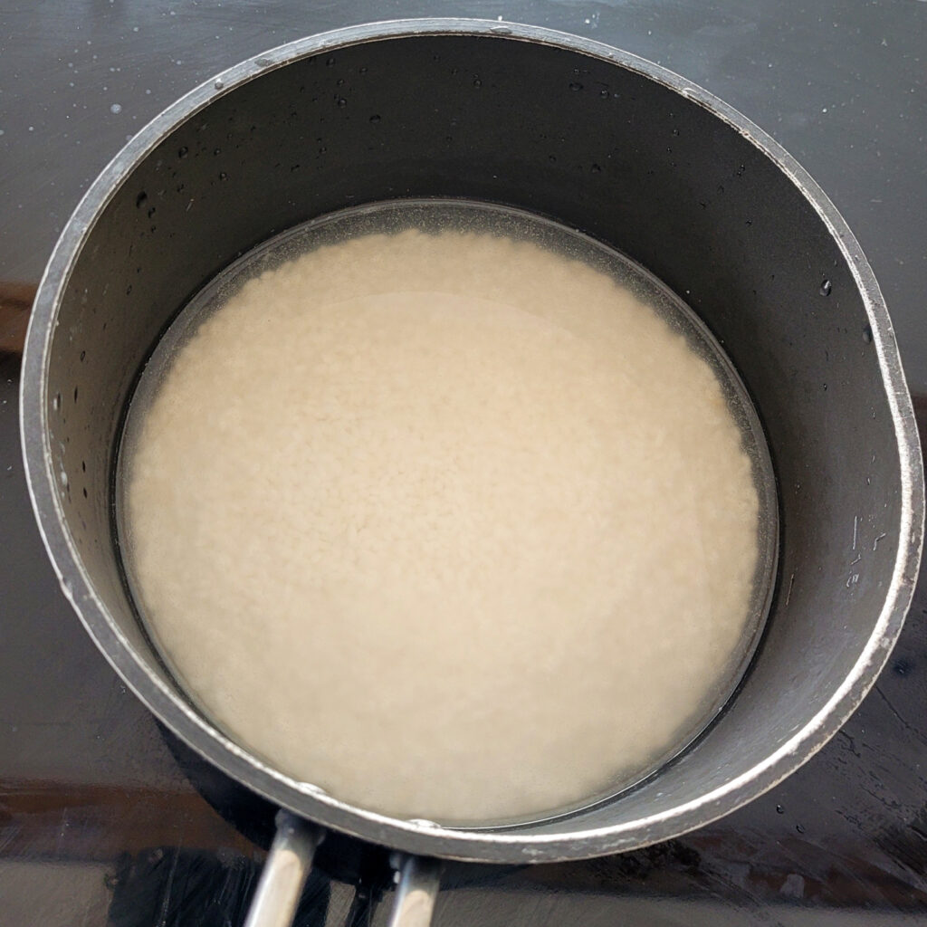After soaking, drain the water completely. Then add fresh water using this ratio: